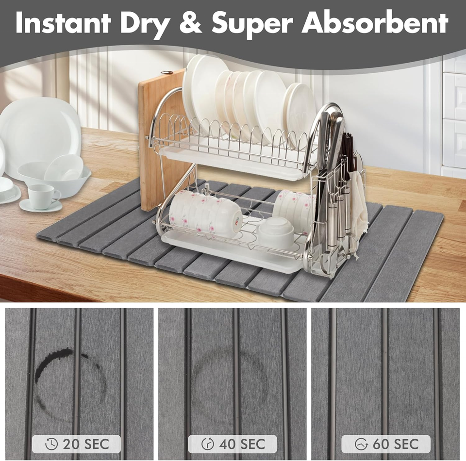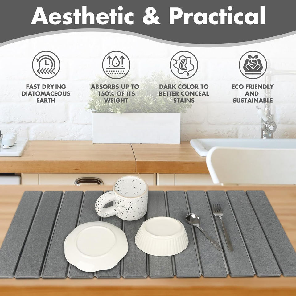 Tapis absorbant l'eau de terre de diatomées écologique et super absorbant, 28 "x 16", tapis de séchage de vaisselle pliable et super absorbant