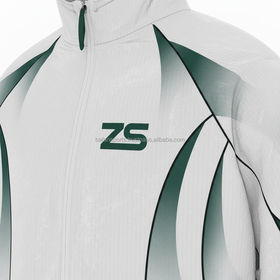 280 GSM coquille souple polyester coupe-vent survêtement ensemble deux tons blanc vert motif logo personnalisé impression broderie grande taille