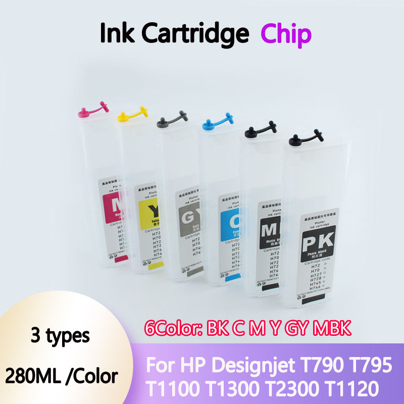 Cartouche d'encre rechargeable Ciss en vrac 280ML HP72 avec puce permanente pour imprimantes HP Designjet T790 T795 T1100 T1300 T2300 T1120