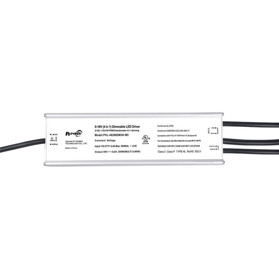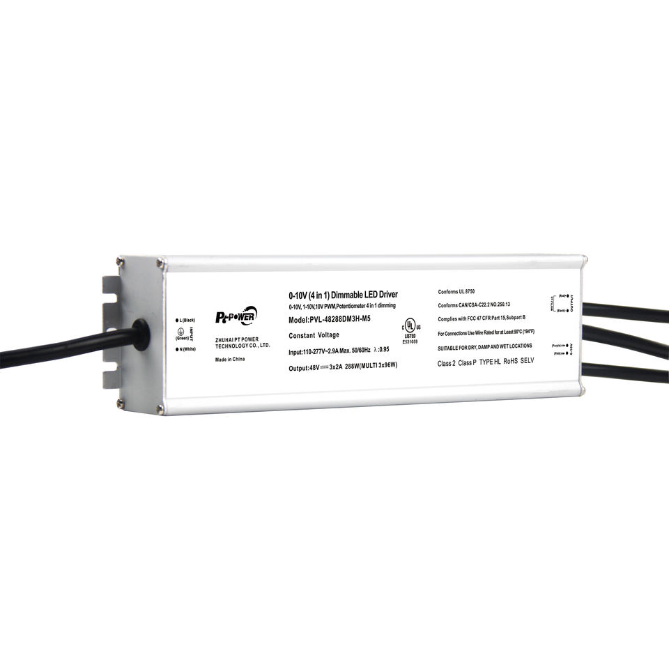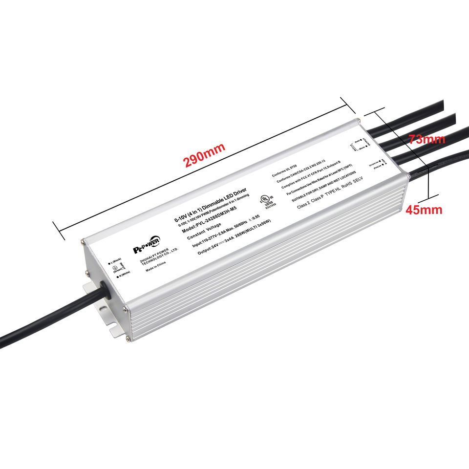 Alimentation LED 288W CUL/UL 3 canaux CV 0-10V 1-10V 10V PWM à potentiomètre variable pour bande LED 100-277VAC-DC 24V 48V IP67