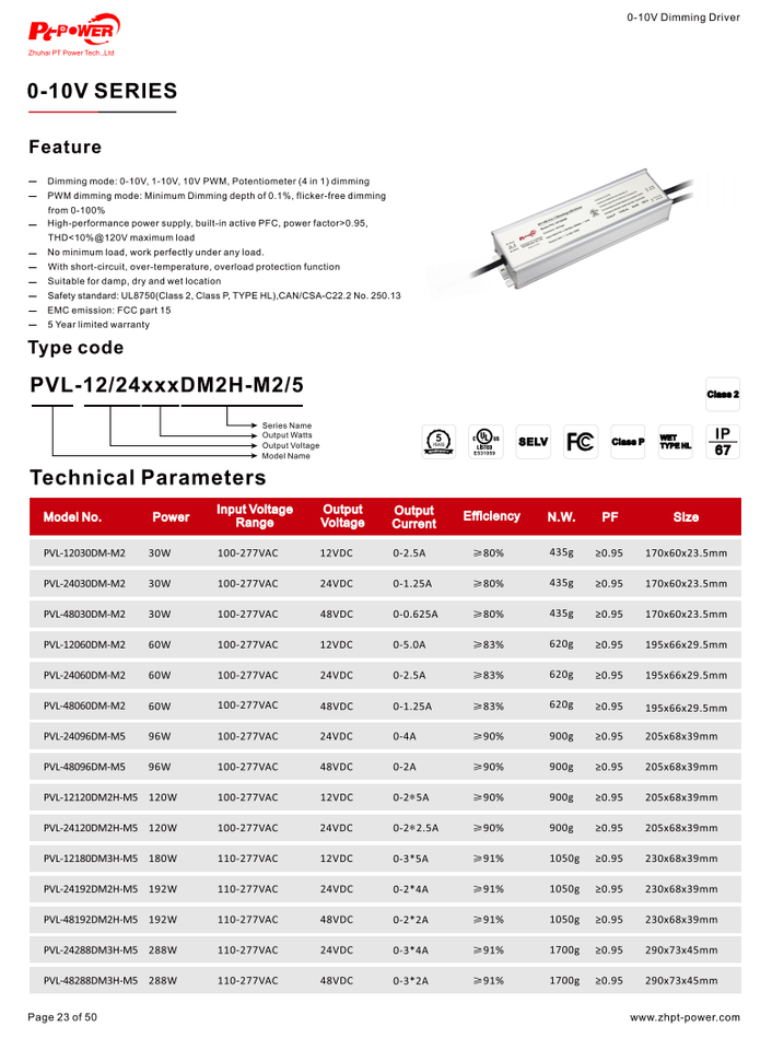 Certification:UL/CUL/FCC/Classe 2/RoHS