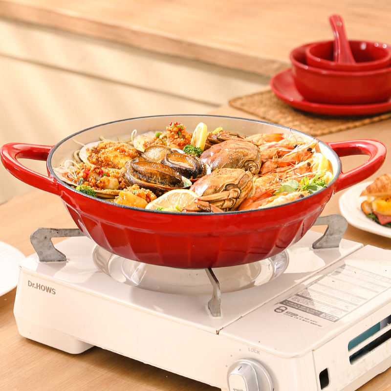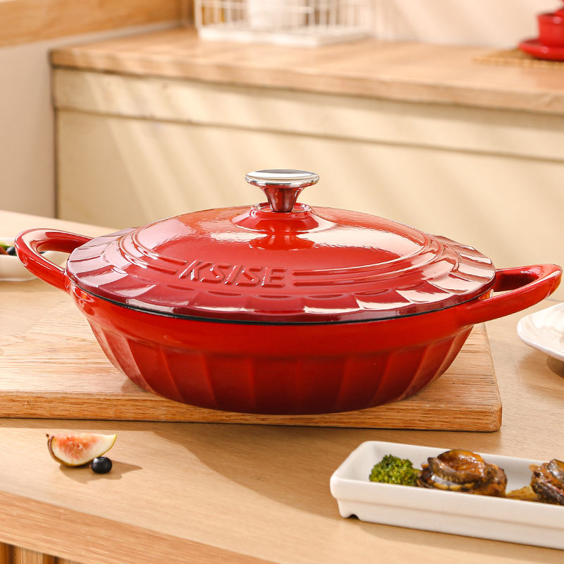 Ustensiles de cuisine en fonte émaillée de 28cm Casserole peu profonde de fruits de mer Marmite à frire pour la maison Restaurant Cuisine