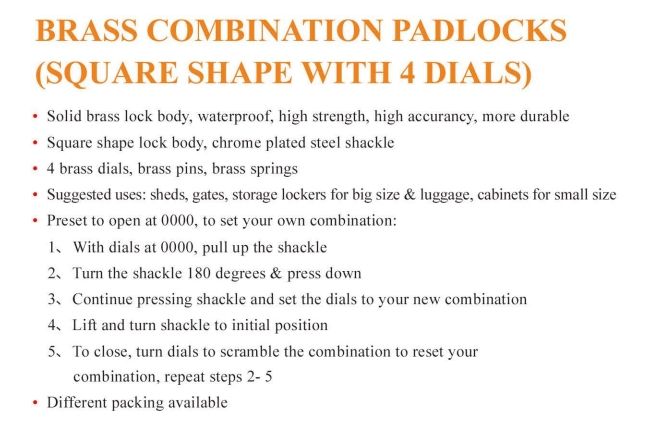 Matériel:Corps de serrure en laiton massif, anse en acier