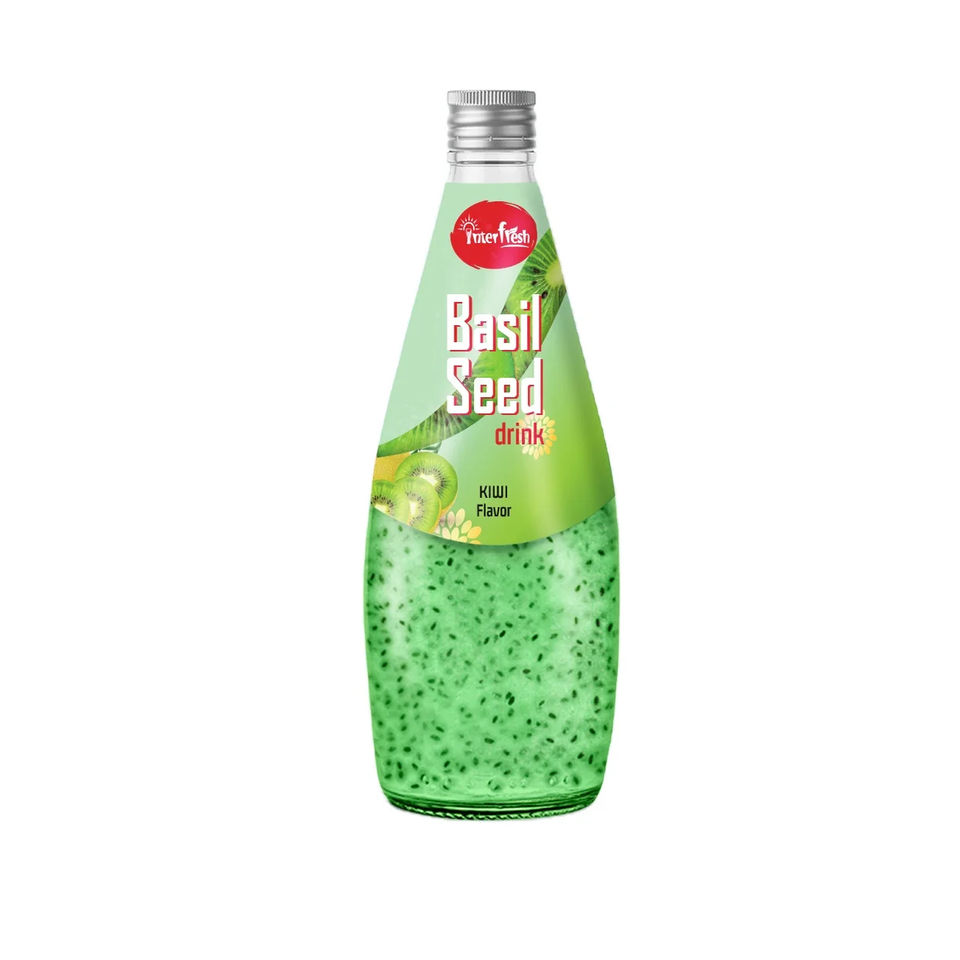 Bouteille en verre de 290 ml, jus de marque Interfresh, saveur basilic et myrtille, avec sachets, ingrédients certifiés ISO, eau, graines de basilic, sucre