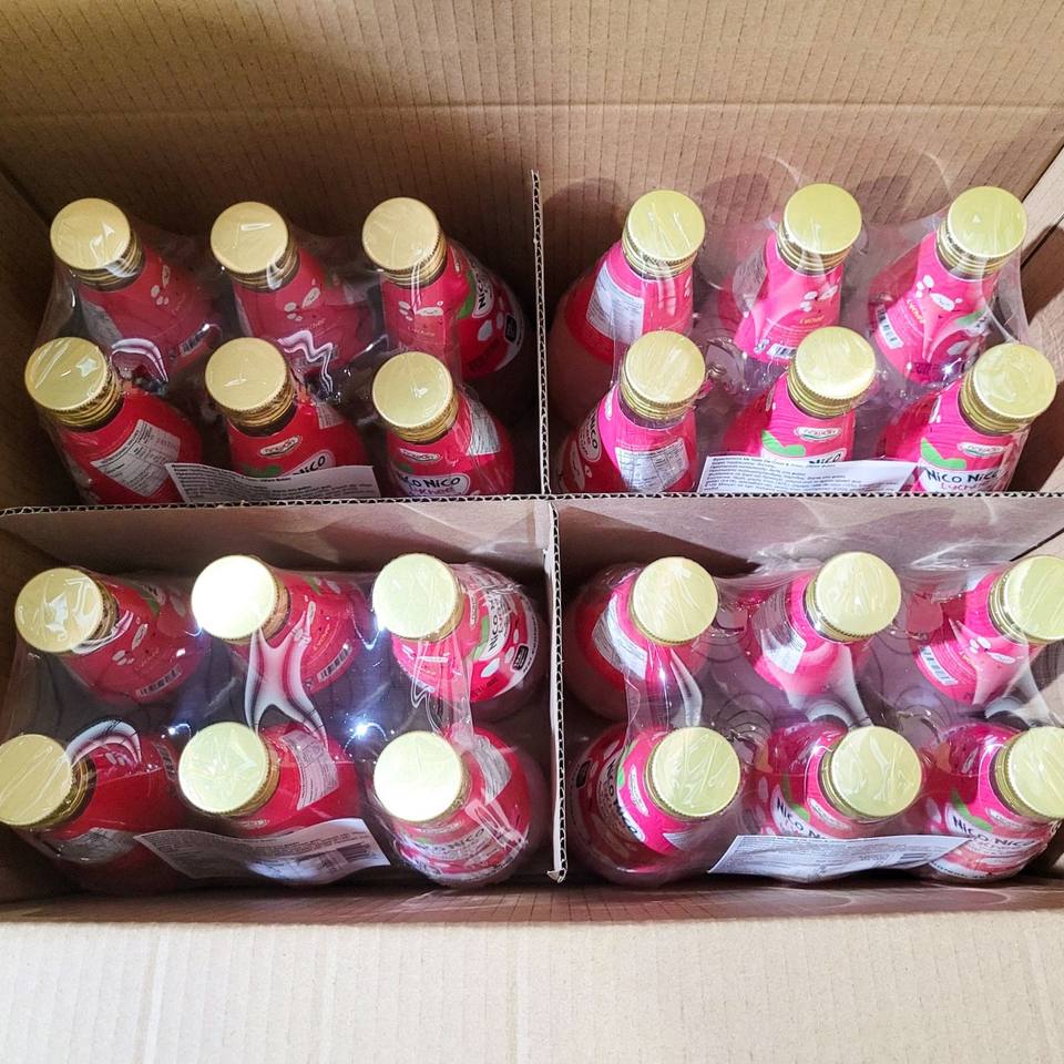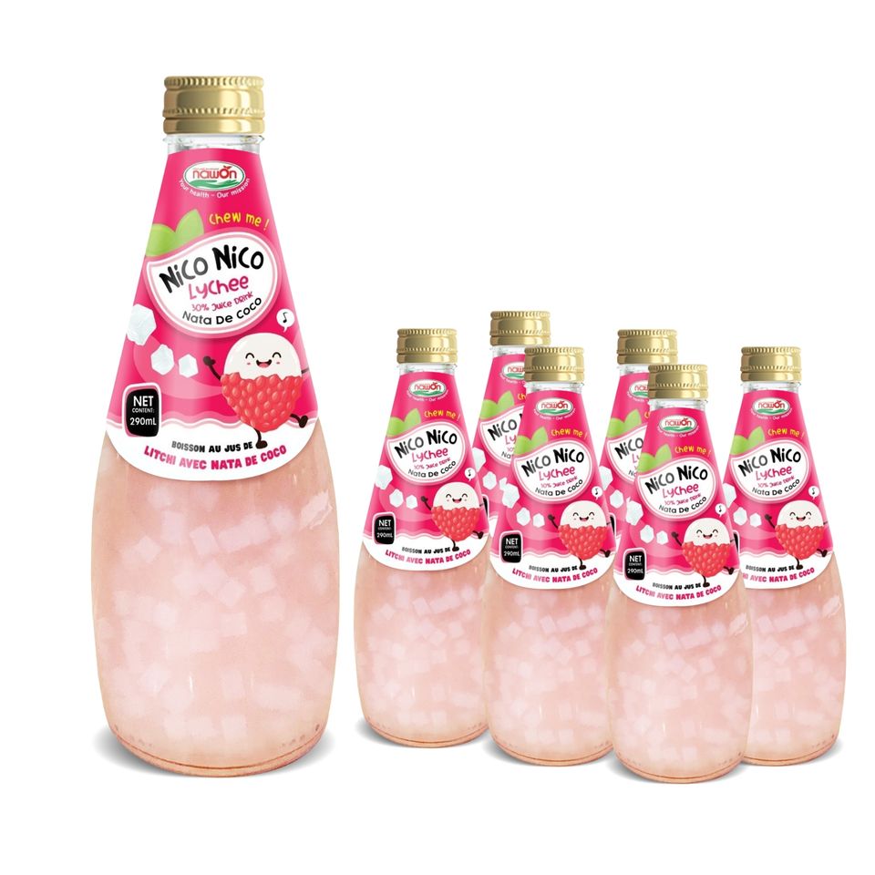 290ml Glass Bottle Nico Nico Nata De Coco with Lychee Juice Thailand Coconut Jelly Drink - Private Label and Logo Customizable