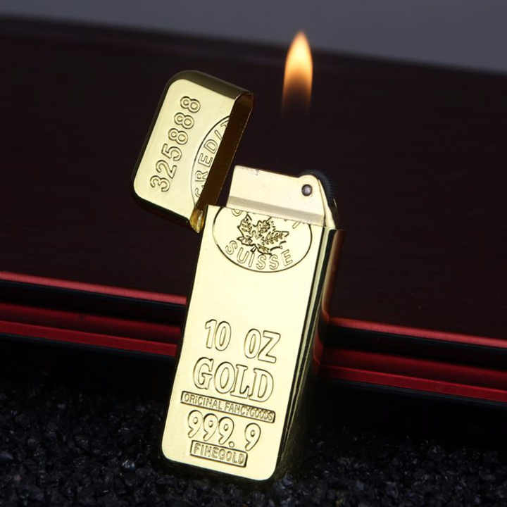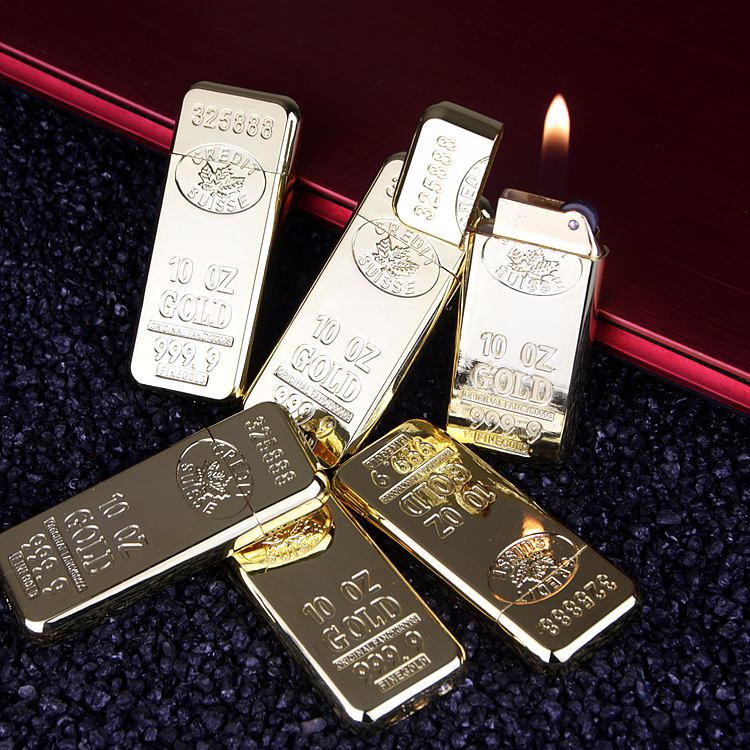 Briquet à gaz créatif ultra-mince en forme de barre d'or 297 avec meule à silex pour cigarettes