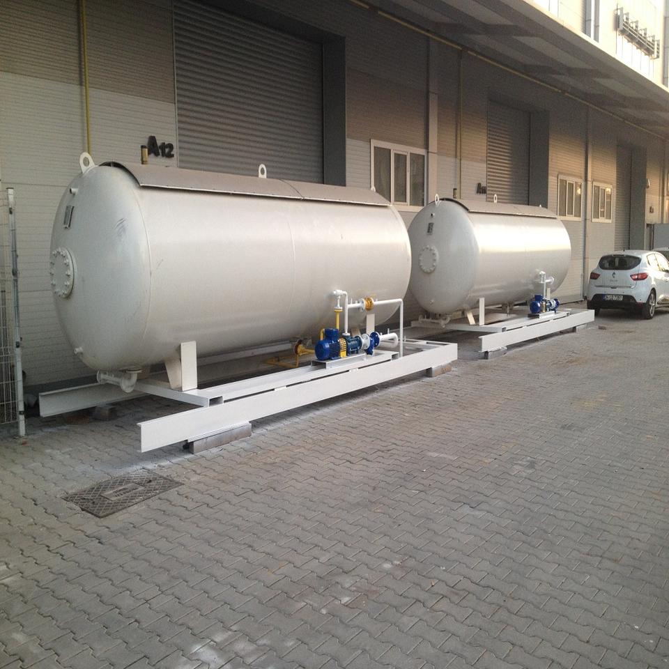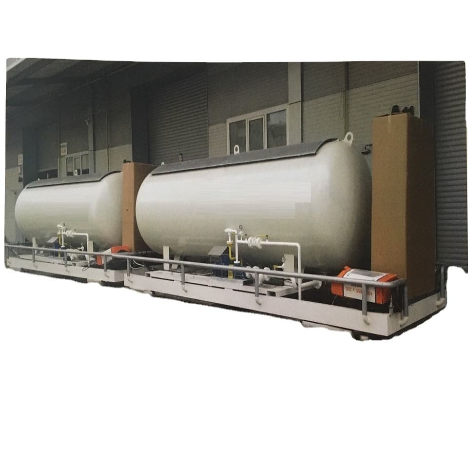Station mobile GPL 2A avec réservoir ellipsoïdal, pompe couplée 8 étages, moteur antidéflagrant 4kW, 40m3, 2 buses, pression 18-26 bars