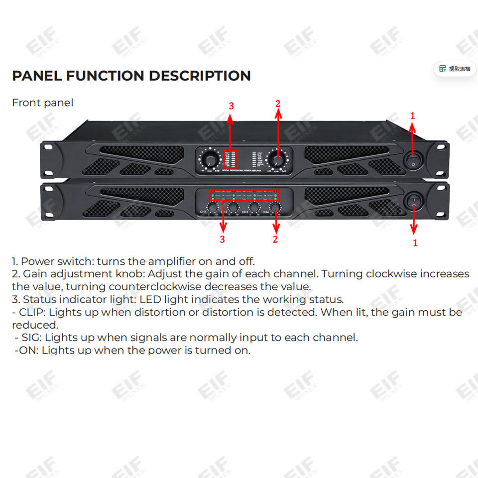 Amplificateur numérique haute efficacité 2 canaux BG2.8 2*800W@8ohm 2*1200W@4ohm Classe D Amplificateur audio professionnel
