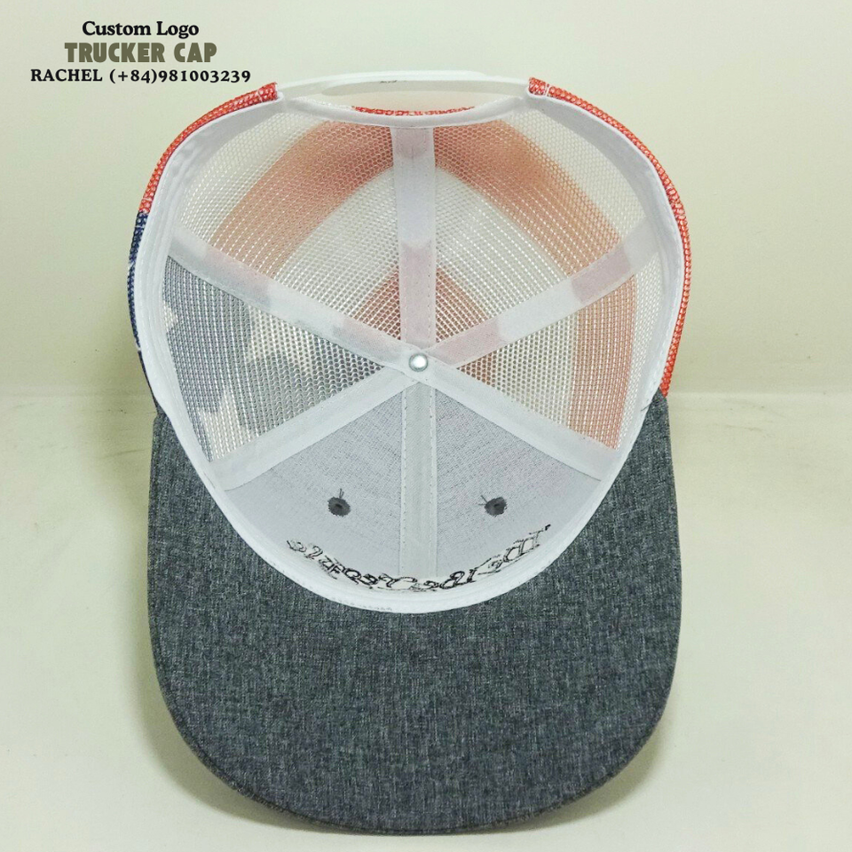 Chapeaux de camionneur structurés 2D brodés avec logo 6 panneaux, maille imprimée à bord légèrement incurvé, fermeture Snapback réglable et respirante OEM