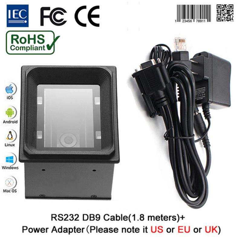 Scanners de codes-barres 2D à montage fixe pour contrôle d'accès, borne de vente automatique avec Wiegand RS485 RS232 pour vérificateur de prix
