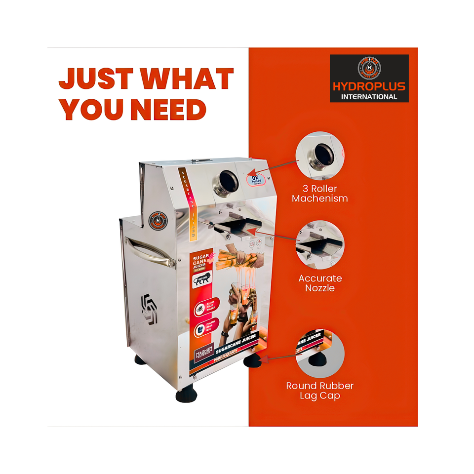Extracteur de jus de canne à sucre commercial 2HP en acier inoxydable avec trois rouleaux diamantés et protection contre les surcharges