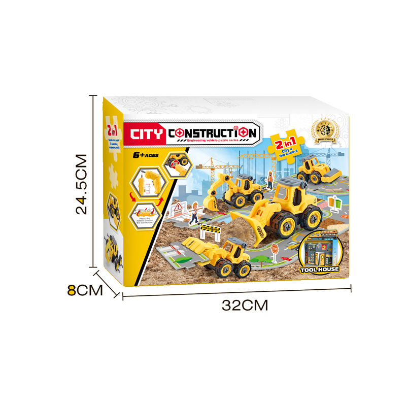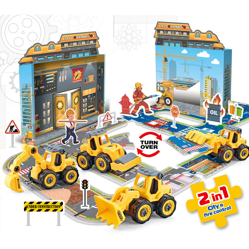 2In1 Ville Ingénierie Scène Jigsaw Puzzle Bâtiment Perceuse Électrique Construction Ingénierie Véhicule Démonter Piste Carte Jouets
