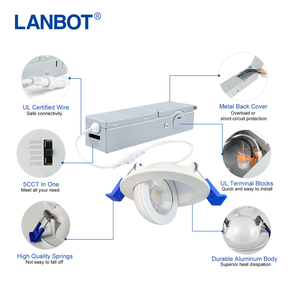 Downlight LED encastré orientable 2 pouces 5W Triac 0-10V DALI Darklight avec cadre et certification ETL