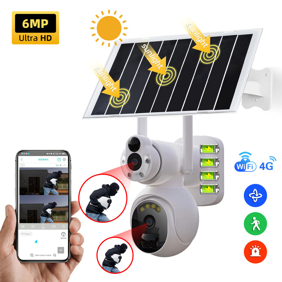Caméra Solaire d'Extérieur PTZ 360 Sans Fil Wifi 4G LTE Objectif Double 2K 4K Intelligente CCTV ZCVision pour Système de Caméras de Sécurité en Gros