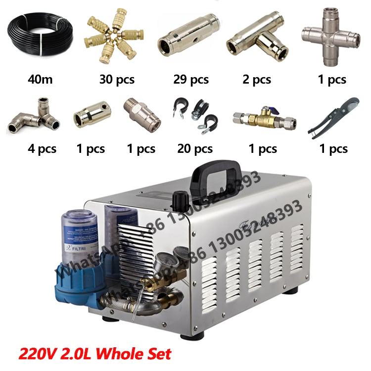 Système de brumisation d'eau pour humidificateur de serre 2L, système de brouillard de refroidissement pour jardin extérieur, patio, arrière-cour, machine à brouillard à haute pression