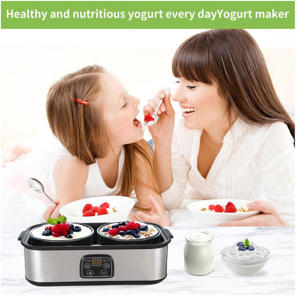 Yaourtière électrique numérique automatique à grande capacité de 2 L, machine à yaourt professionnelle, machine à crème glacée et à pouding + gobelets