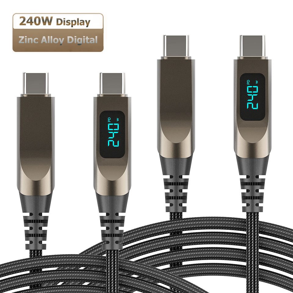 Câble de téléphone portable USB-C à affichage LED en zinc, charge rapide PD3.1 240W, 2M 1.2M, accessoires électroniques en gros, PD Type C vers C