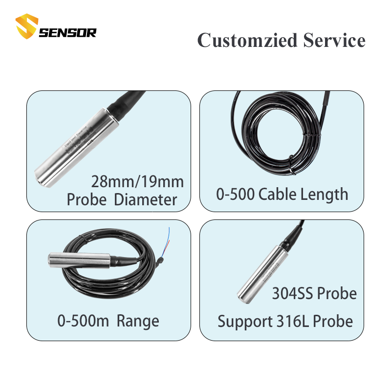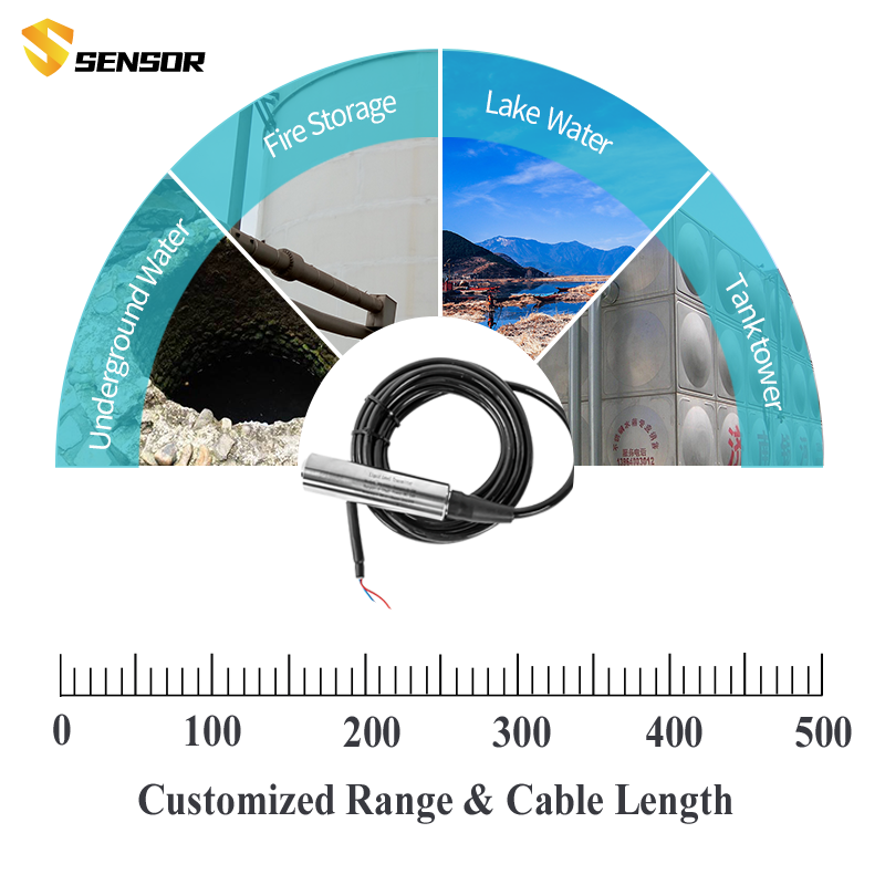 Capteur de niveau de liquide 2M 3M 5M, alimentation DC24V, sortie 4-20mA 0-10V 0-3.3V RS485, transmetteur submersible