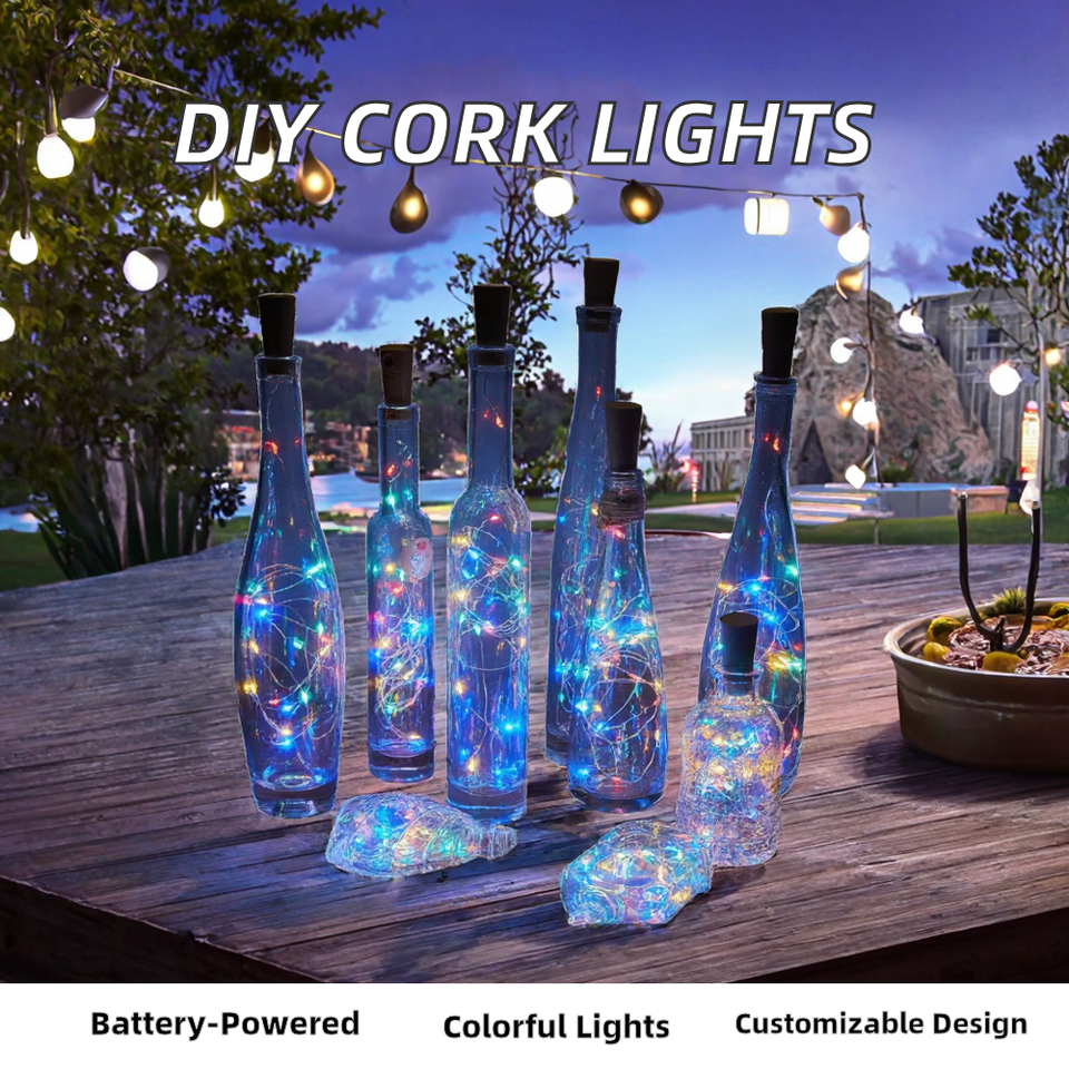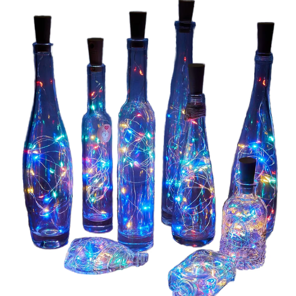 Guirlande lumineuse à piles de 2 m en fil de cuivre blanc chaud IP44 à intensité variable 20 LED Décoration de bouchon de bouteille pour mariages Noël DIY