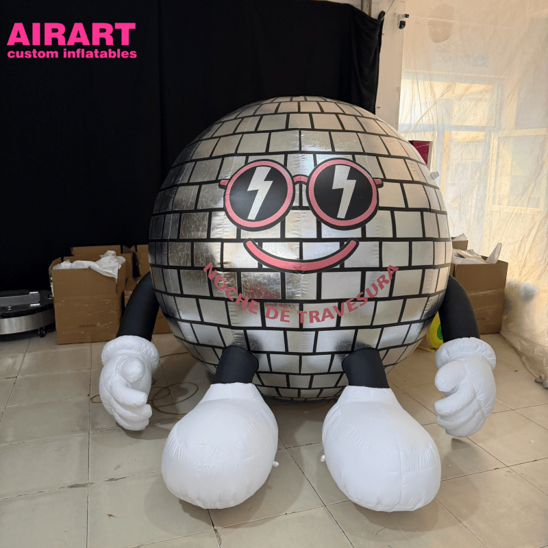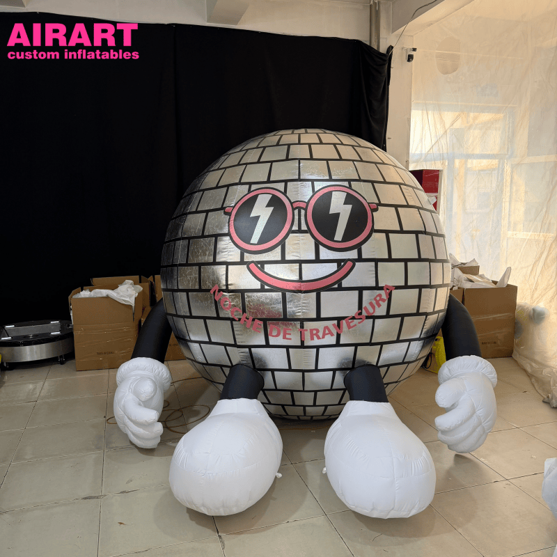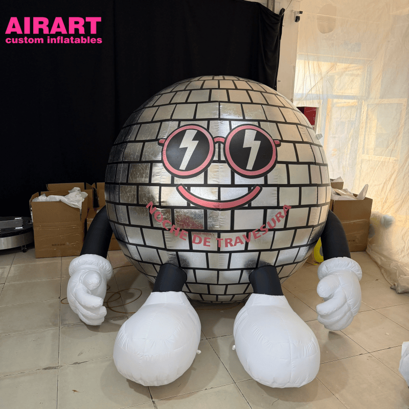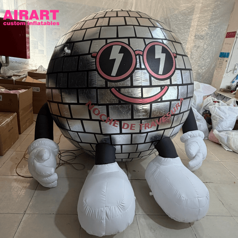 Boule disco miroir de 2 m avec figurine de dessin animé pour la décoration de scène, idées de fête, boule disco miroir en PVC