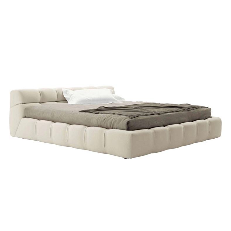 2M Tissu de velours blanc Design italien Tissu de lit ottoman rembourré Cadre de lit Queen avec tête de lit et pied de lit capitonnés à vendre