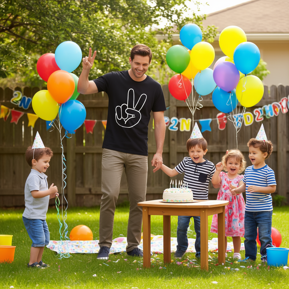T-shirt assorti pour la famille avec signe de paix pour le 2e anniversaire, design noir et blanc, vêtements de fête pour enfants