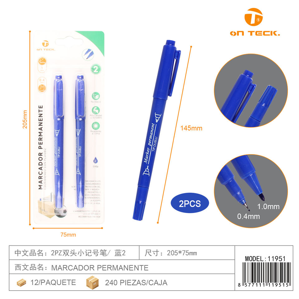 Marqueur double tête On Teck Sa De Cv, petit, bleu, durable, portable, léger, pour l'écriture, l'art, l'école, 11951