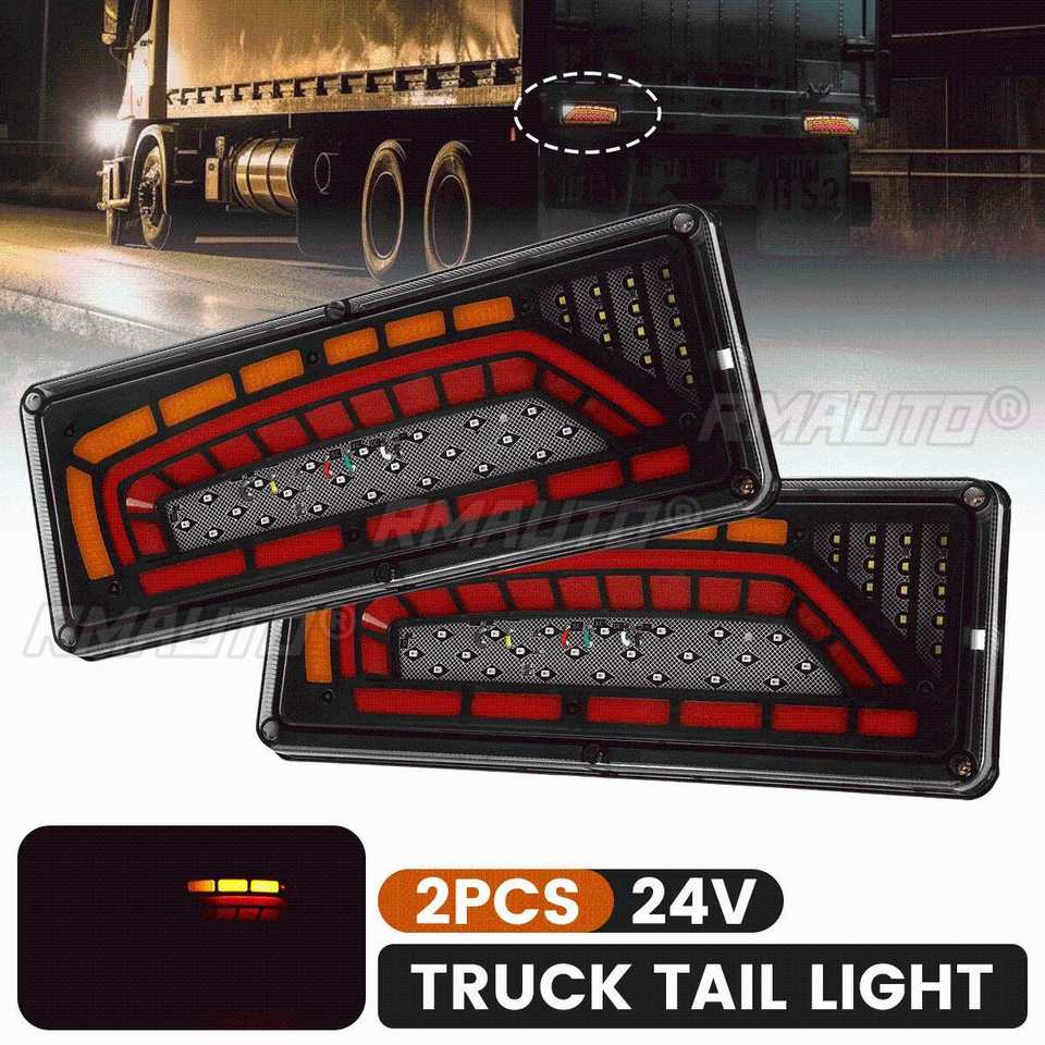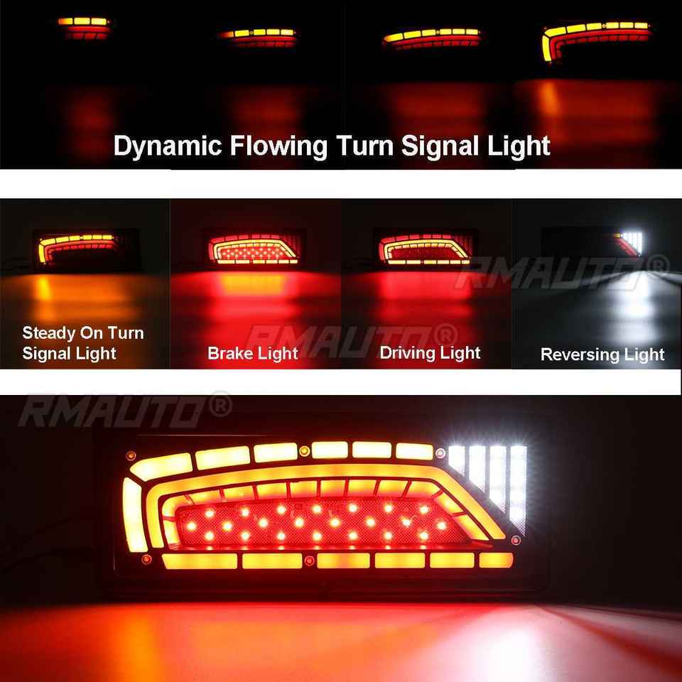 2PCS 24V Feux arrière dynamiques à défilement de couleur, clignotants, feux de freinage et feux de recul pour voiture, remorque, camion, poids lourd 33x14CM