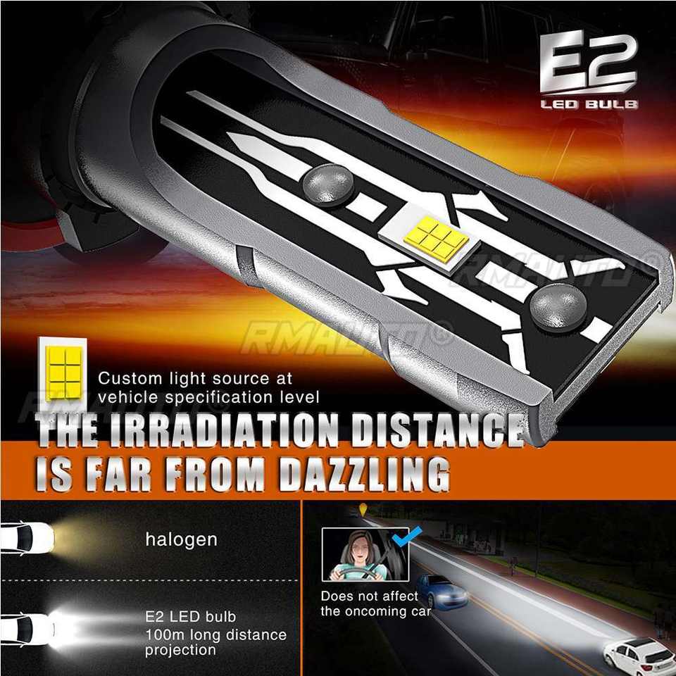 2 ampoules LED E2 Canbus 30000LM pour phares de voiture H4 H7 H11, feux antibrouillard avant, DC9-18V, faisceau haut/bas