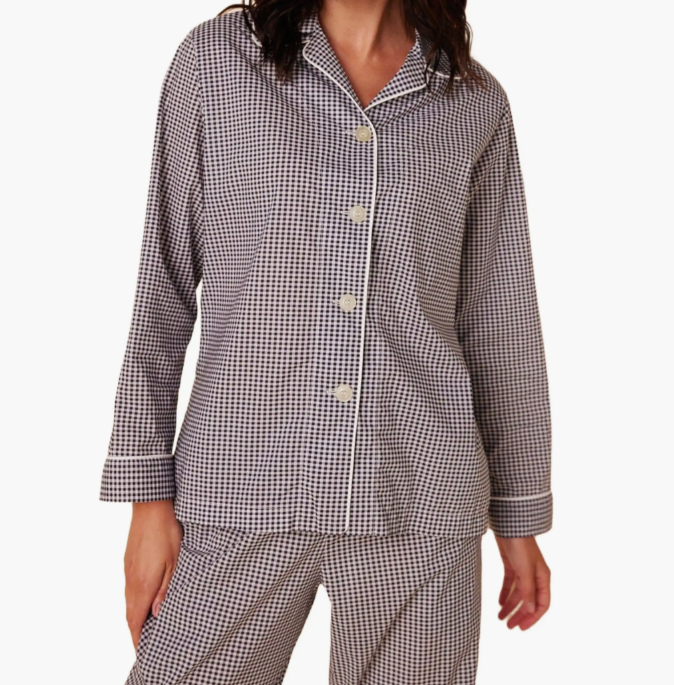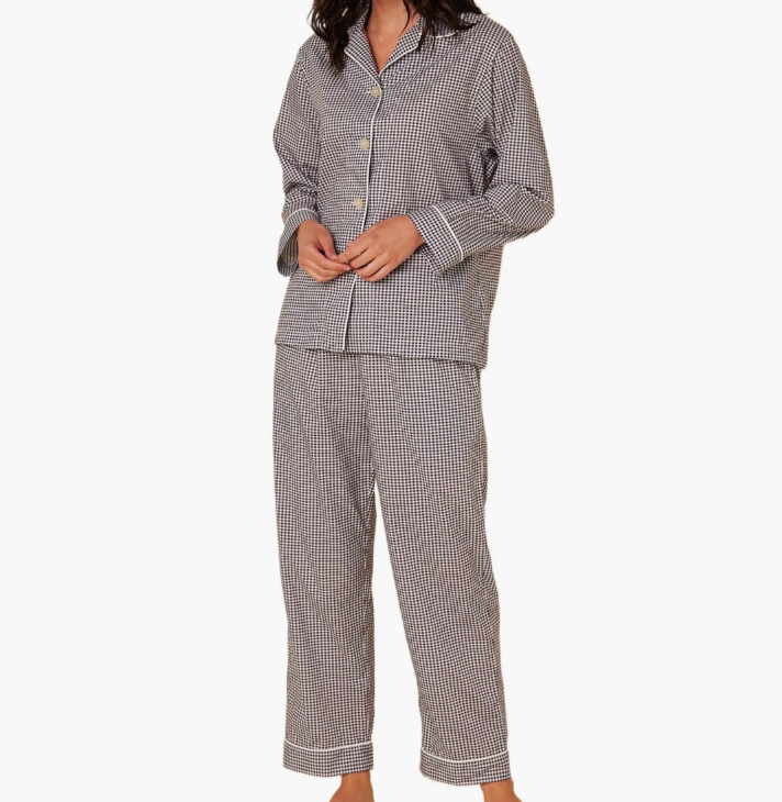 Ensemble de pyjama pour femmes, 2 pièces, manches longues, boutonné, taille élastique, vêtements de détente, vêtements de nuit, vêtements de printemps, pyjama à carreaux avec logo sur le devant