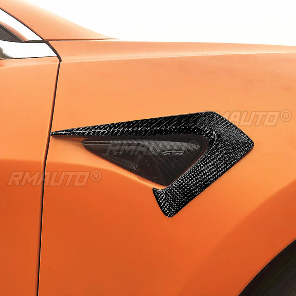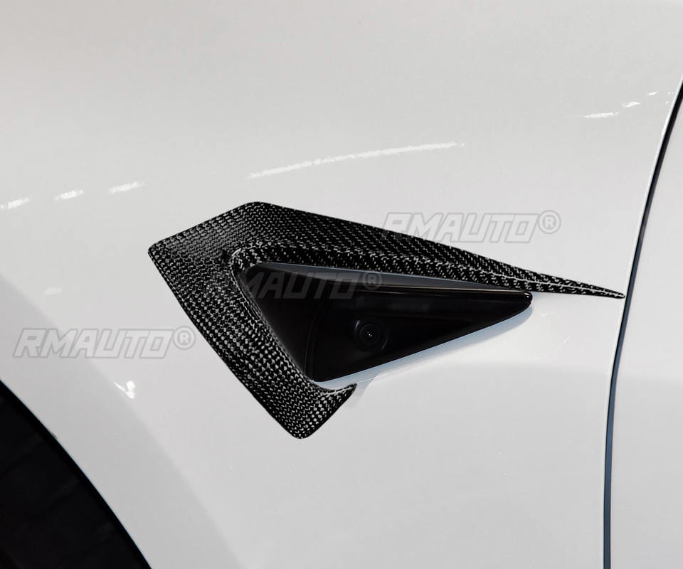 2PCS Protection de caméra latérale en fibre de carbone véritable, garniture de protection de pare-chocs pour Tesla Model 3 2018 2019 2020 2021
