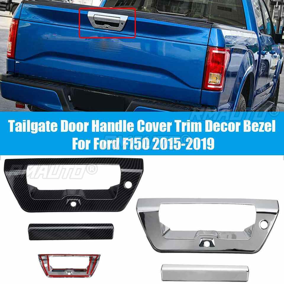 2PCS Couvre-poignée de hayon décoratif avec finition en fibre de carbone chromée pour Ford F150 2015 2016 2017 2018 2019 Accessoires de voiture