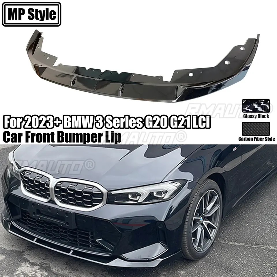 2 pièces pour BMW Série 3 G20 G21 LCI 2023+ – Lame de pare-chocs avant style MP pour berline 330i M340i – Spoiler séparateur noir brillant