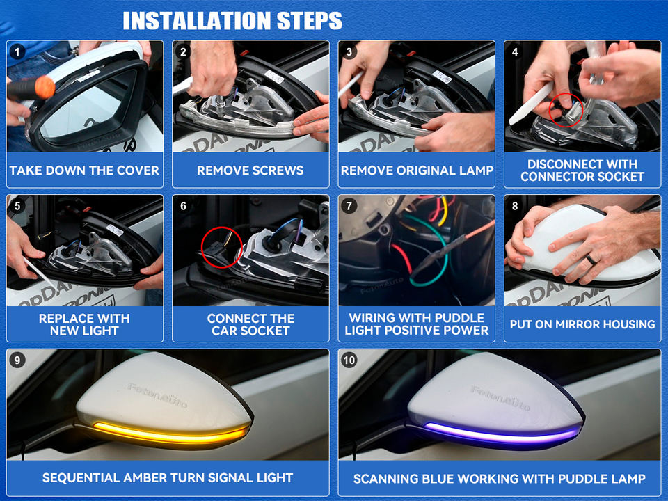 Special Features:Dynamic/Sequential mirror led lamps