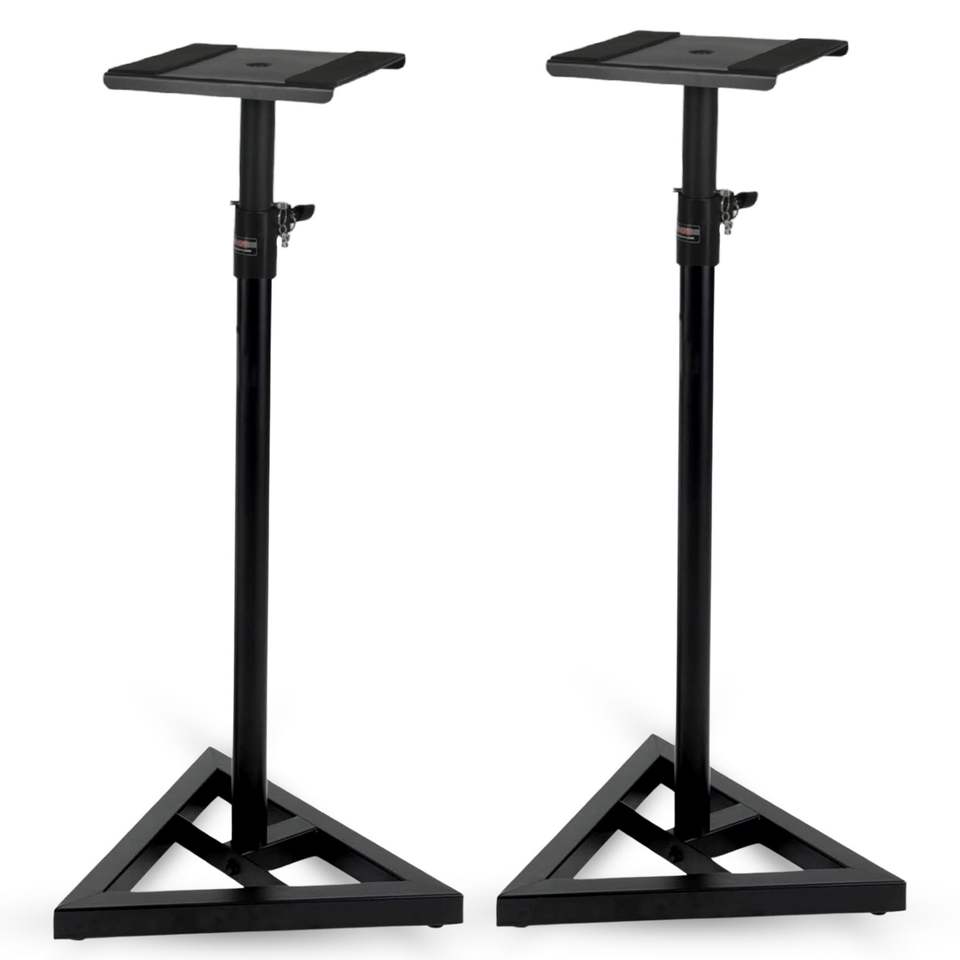 Supports et pieds de haut-parleur robustes, réglables en hauteur, télescopiques, base triangulaire, capacité de 100 lb, 59,5 pouces, 2 pièces