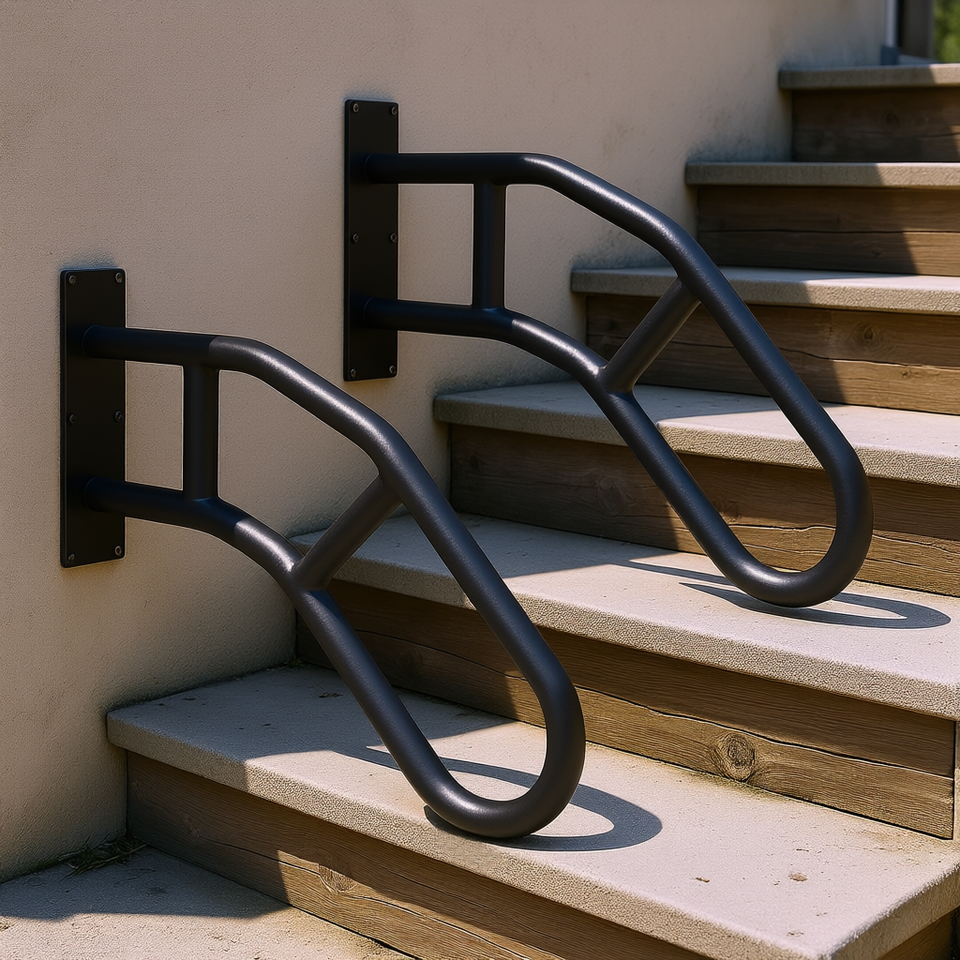 2Pcs 29 In Wall Mount Outdoor Handrails Steel Stair Parts For 1-3 Steps Premium Quality Industrial Design