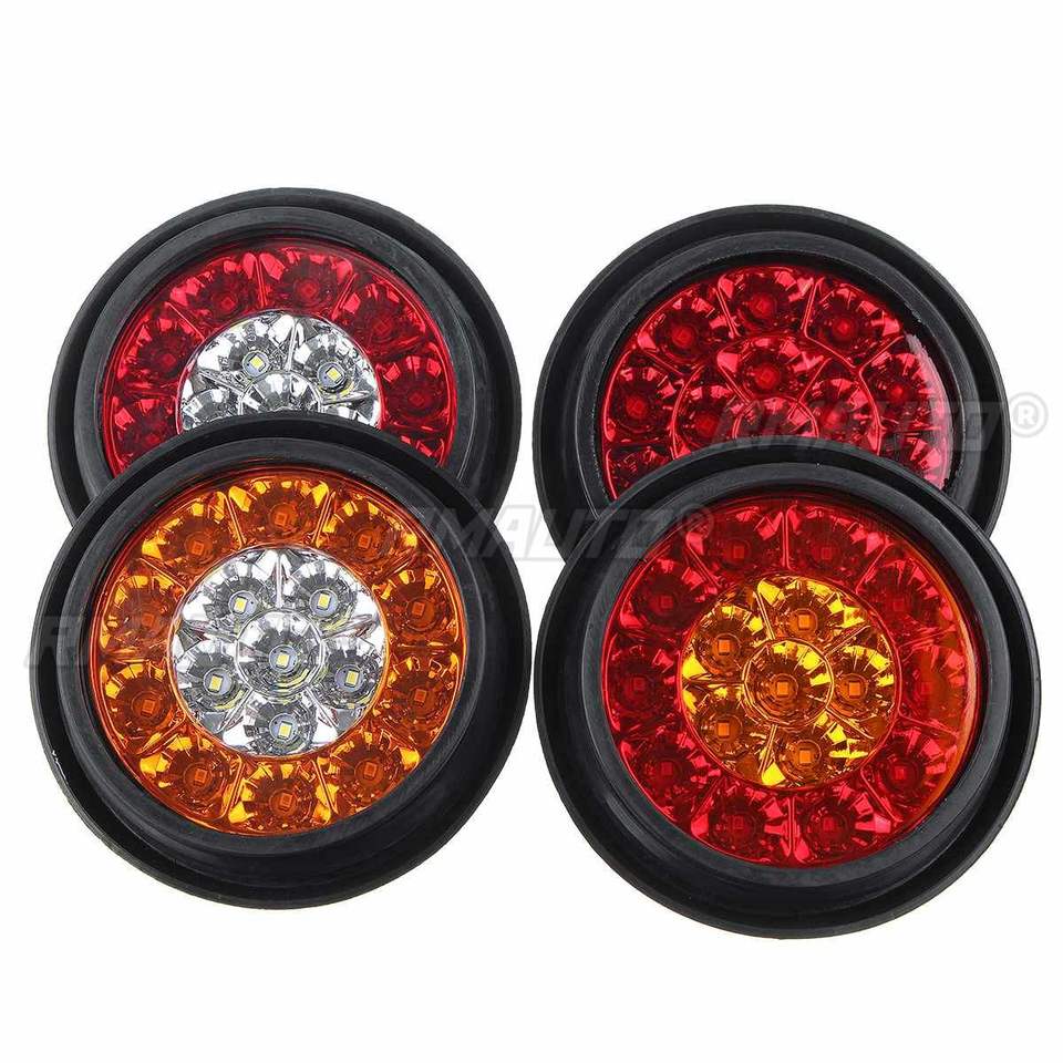 2 ou 4 pièces, feux arrière ronds 12V 16 LED ambre/rouges pour voiture, feux de brouillard arrière, feux stop, feux de recul pour camion, remorque, poids lourd