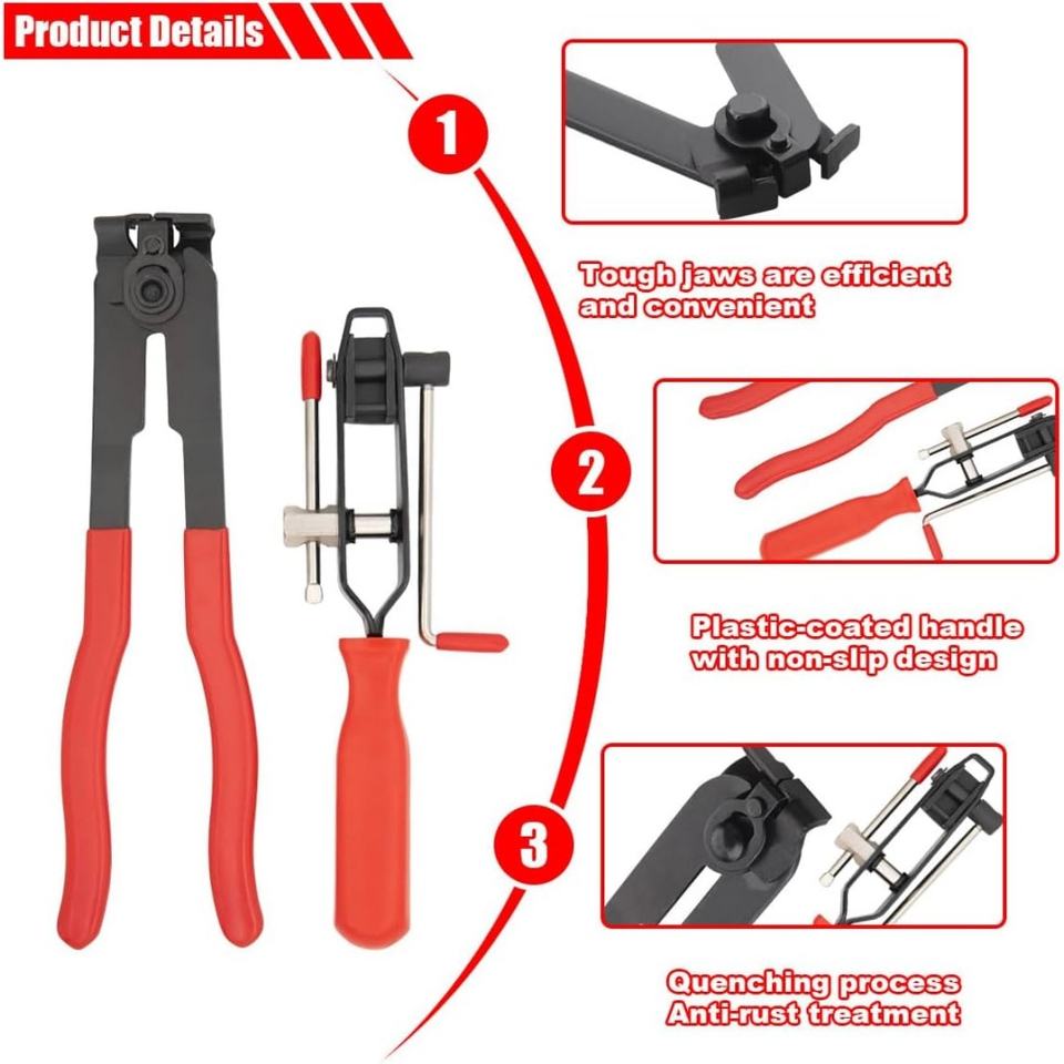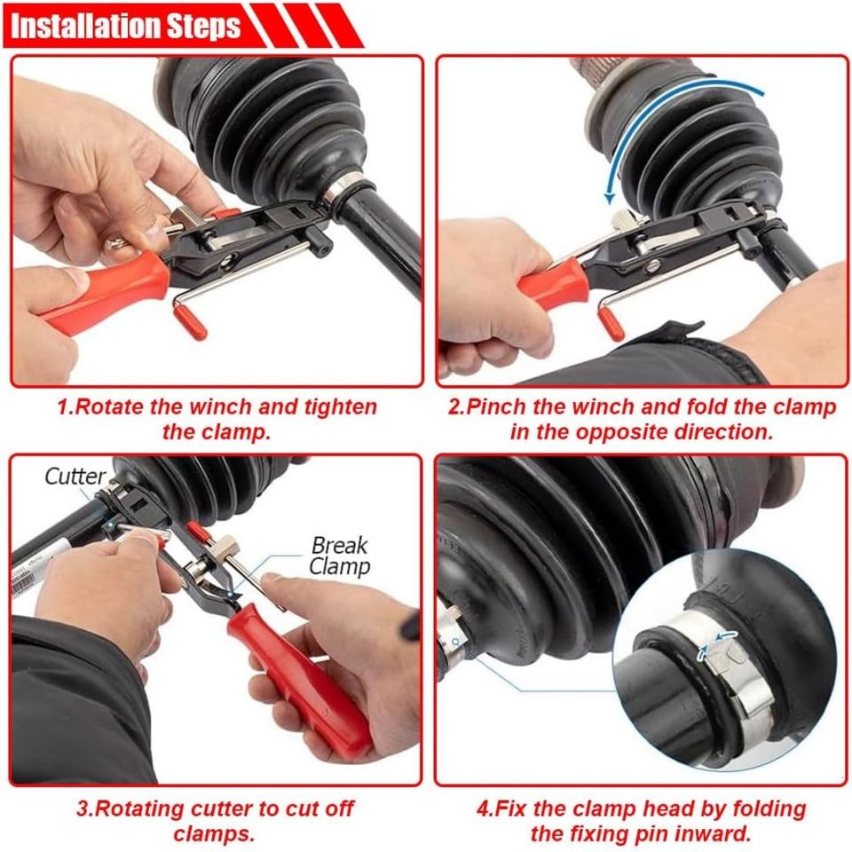 Jeu de 2 pinces pour colliers de serrage de soufflet de cardan, kit d'outils universels de serrage à oreilles avec coupe-câbles pour essieux automobiles et flexibles d'aspiration