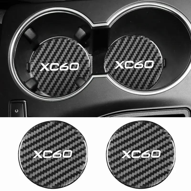 2Pcs Dessous de verre en fibre de carbone antidérapant pour Volvo XC60 XC40 XC90 AWD V90 V60 T6 V50 S40 S60 S90