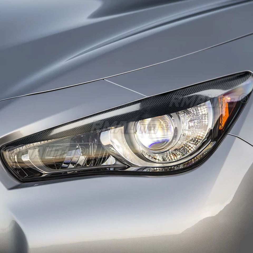 2 pièces de garnitures de phares en fibre de carbone pour Infiniti Q50 2014 2015 2016 2017 2018