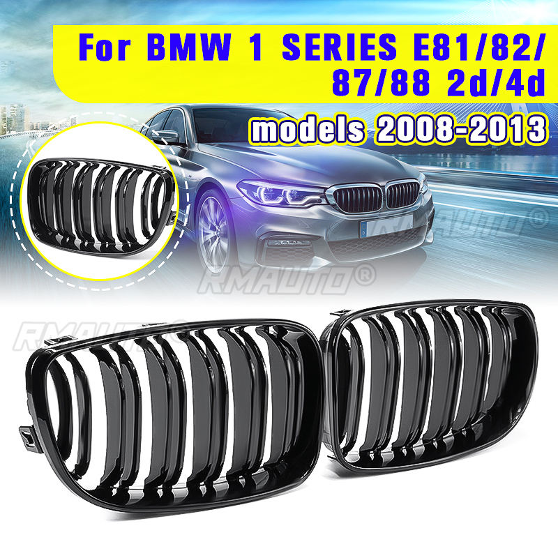 2 pièces Grilles de calandre avant pour BMW E81 E82 E87 E88 118i 125i Série 1 2007-2013 Noir brillant mat M 2 Lames Style automobile