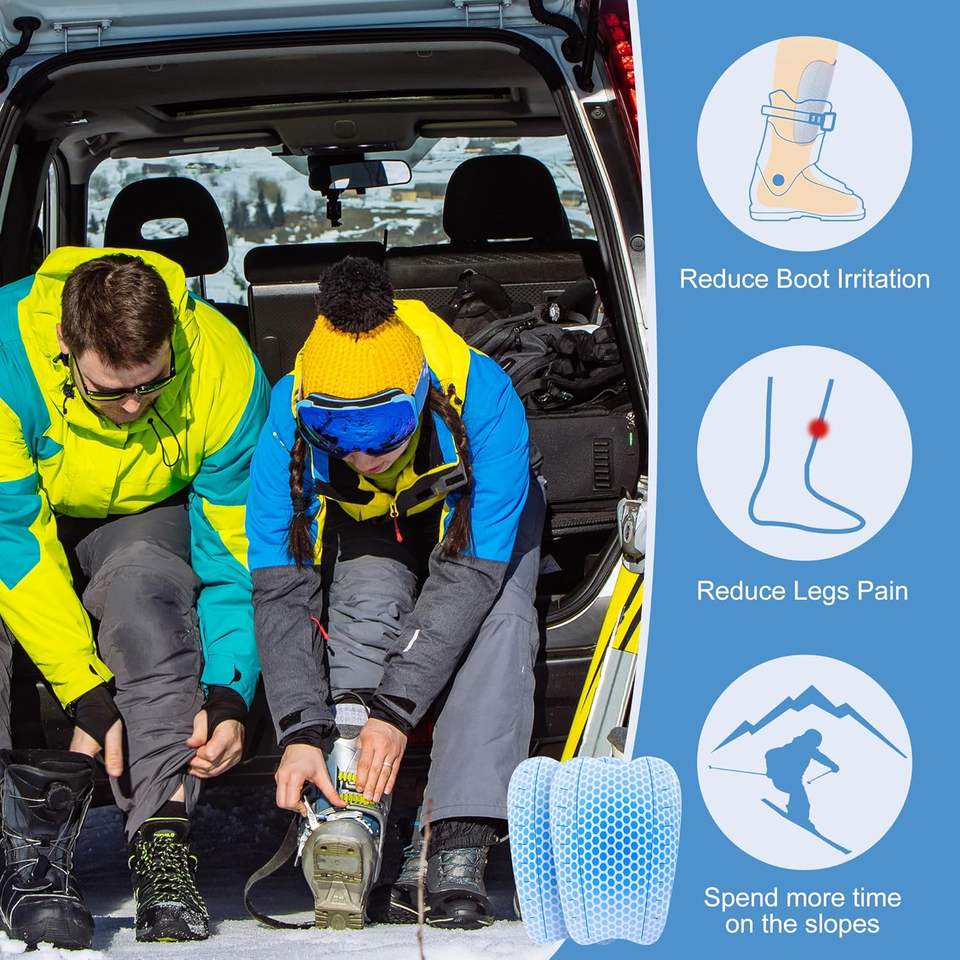 2 protections de tibia en gel souple pour le ski, 6x4 pouces, réutilisables, coussin de protection, doublure de chaussure de ski, réduction de la pression, protection complète