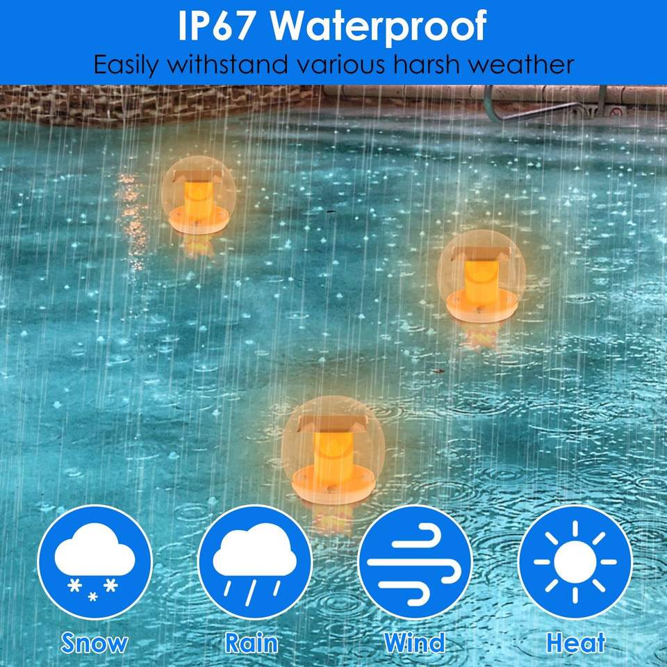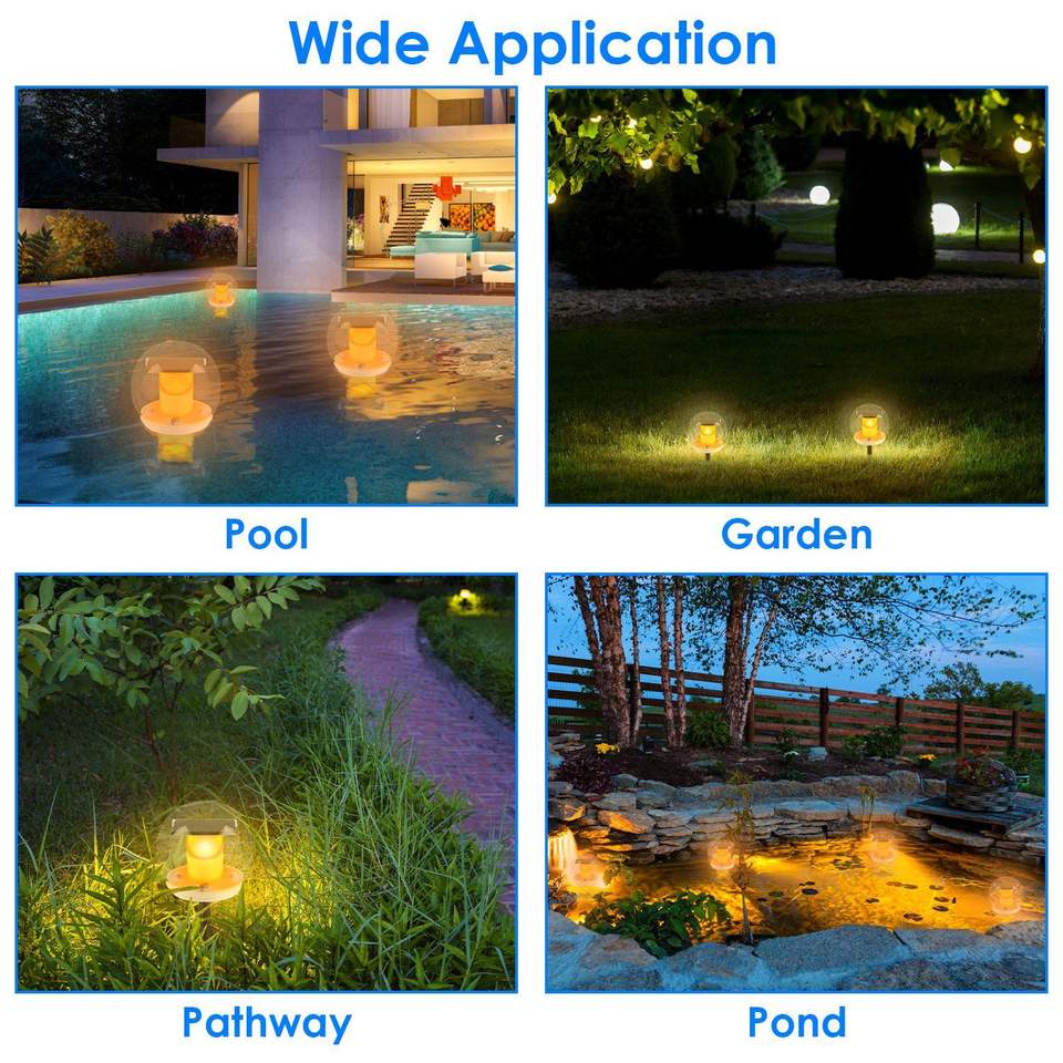 2 lampes solaires flottantes pour piscine, étanches IP67, en forme de globe, avec 3 modes d'éclairage, lampes solaires à piquet effet flamme