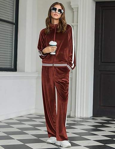 2Piece Women Velvet Tracksuit Velour Lounge Set with Zip-Up Top and Sweatpants Comfortable Casual Wear Outfit with Handy Pockets
