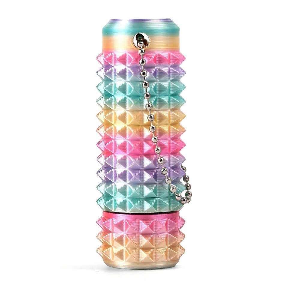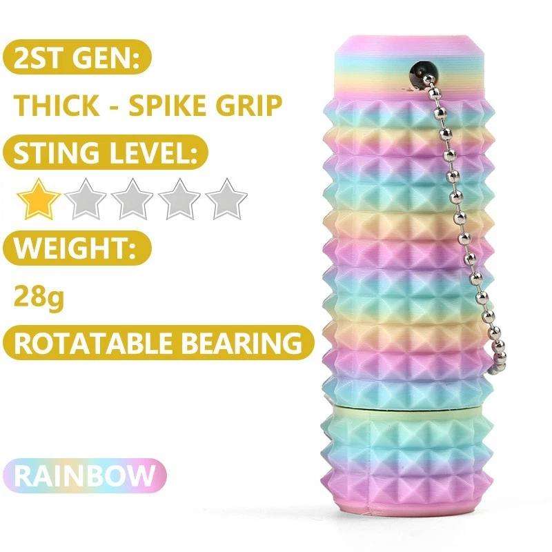 Porte-clés anti-stress style punk 2e génération, 28g, à pointes épaisses, bleu-vert, avec roulement rotatif pour massage de la paume et concentration