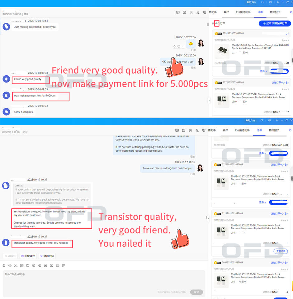 2SA1943 2SC5200 Transistor TO-3PL Nouveau en stock Composants électroniques Bipolaire PNP/NPN Transistor de puissance audio 2SC5200 2SA1943