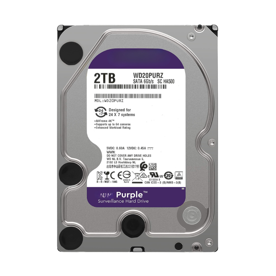 Disque dur interne violet 2 To 3,5 pouces SATA 6 Gbit/s 5400 tr/min 64 Mo de cache Haute fiabilité Boîtier métallique Stockage vidéo pour la sécurité