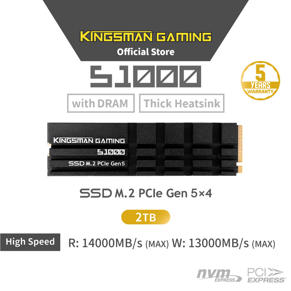 SSD NVMe interne M.2 PCIe Gen5x4 de 2 To avec dissipateur thermique pour utilisation en gaming, IA, station de travail et ordinateur de bureau - Vitesse de lecture/écriture de 14000/13000 Mo/s