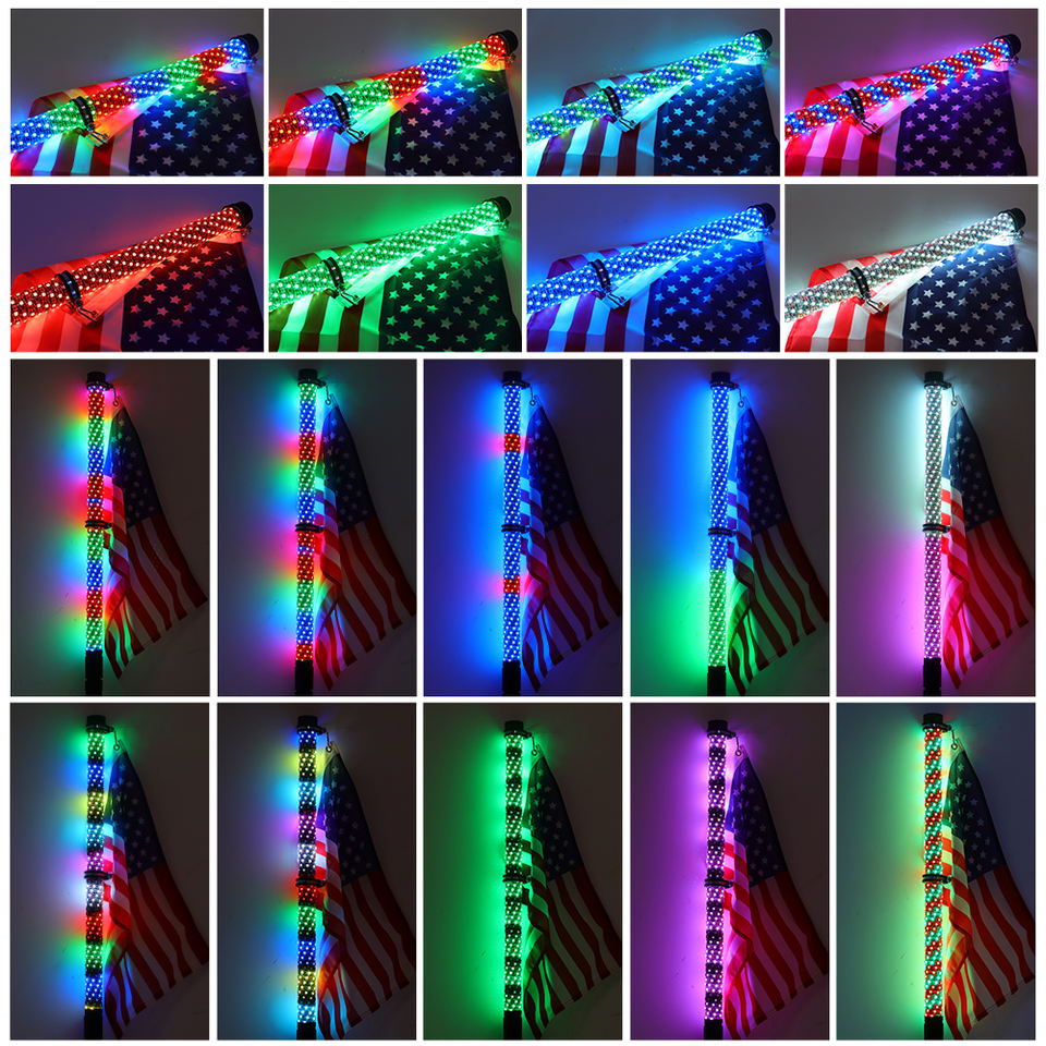 2ft RGB Fat LED Whip Spiral Light Antenne Télécommande APP RGB Chasing Lighted Antenne Whips pour UTV ATV Truck Dune Buggy