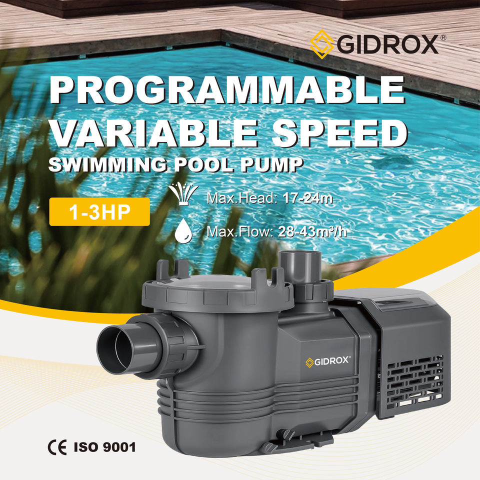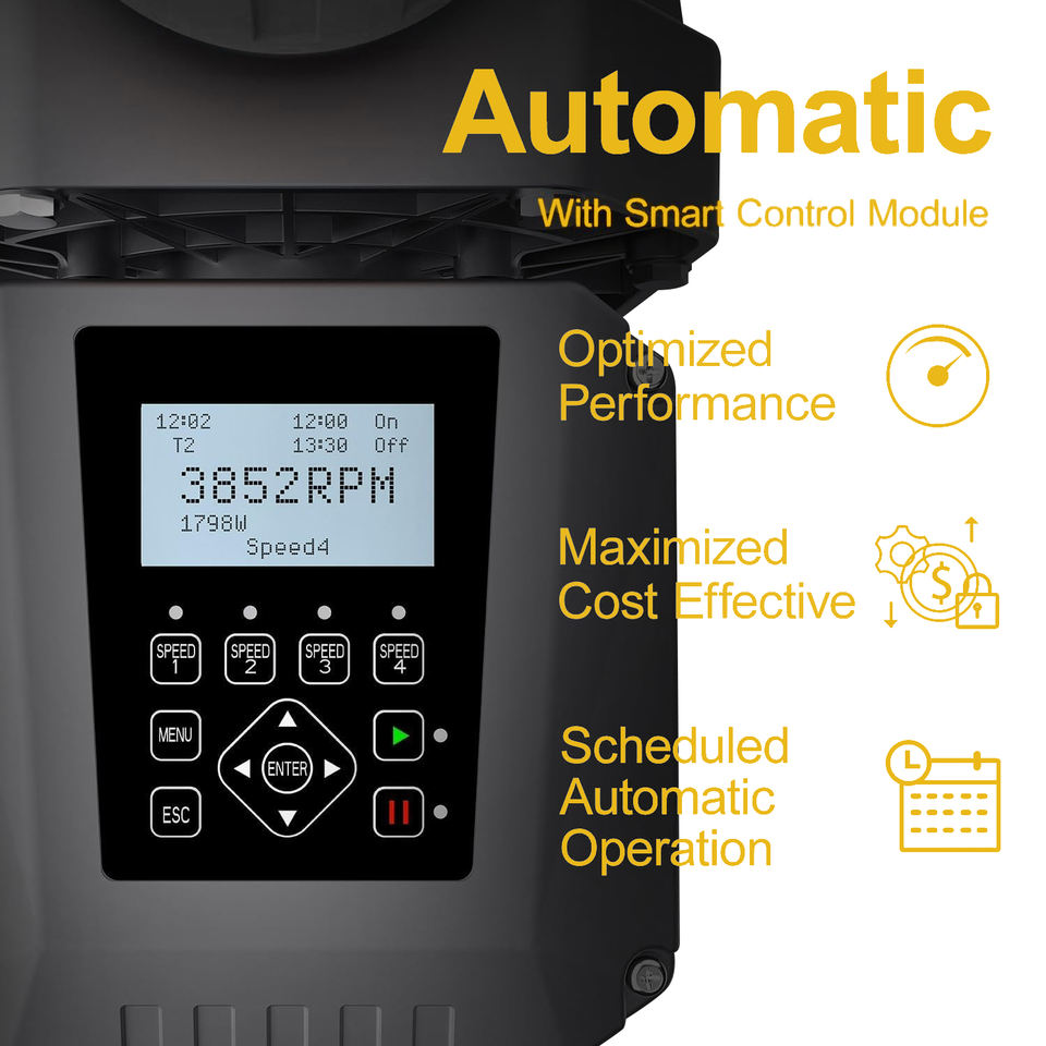 Pompe à vitesse variable 2 CV, haut débit, écoénergétique, auto-amorçante pour piscine hors sol avec housse de protection amovible